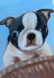 This is 8 week old Toby! Do you see what I see? Pure puppy joy and curiosity preserved forever in Susan's skillfully crafted portrait. I couldn't love the results any more! As we all know, a Boston Terrier puppy face is irresistible but quickly evolves into a more mature and handsome dog face. Now I can relive the magic of baby Toby every time I see this special painting. Thank you so much for this treasure, Susan!